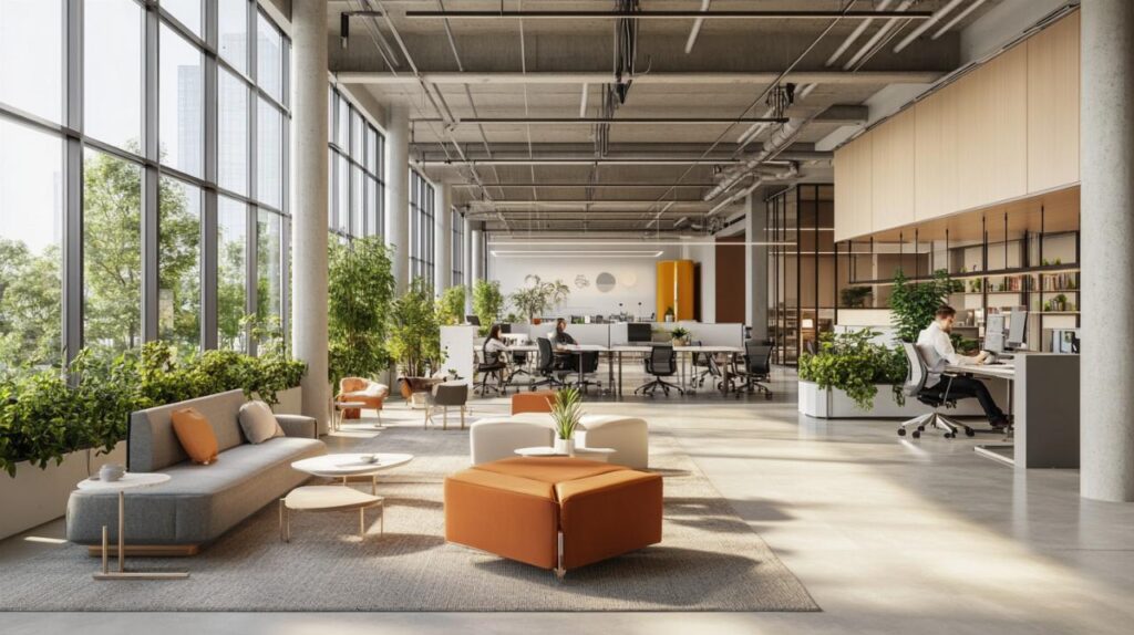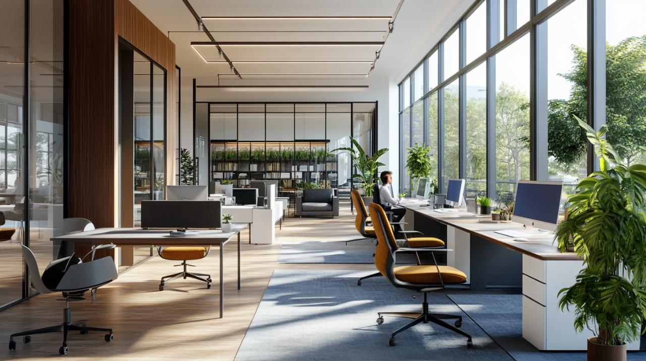 La luminosité constitue un facteur déterminant pour le bien-être et la performance des collaborateurs. Une bonne luminosité favorise la libération d’hormones du bonheur, améliorant ainsi la résistance à la fatigue et au stress. La lumière naturelle présente des avantages incomparables pour la santé physique et mentale des employés, régulant les cycles circadiens et contribuant à maintenir un niveau d’énergie stable tout au long de la journée. L’optimisation de l’éclairage naturel passe par une disposition réfléchie des postes de travail, privilégiant leur proximité avec les fenêtres et les sources de lumière extérieure. Les cloisons vitrées permettent de diffuser la lumière naturelle dans l’ensemble des espaces tout en maintenant une séparation acoustique entre les zones. Les stores et protections solaires doivent être ajustables pour éviter l’éblouissement direct sans pour autant bloquer complètement l’apport lumineux. La biophilie, qui désigne la connexion à la nature, augmente la satisfaction au travail de 40% selon l’Université d’Exeter. L’intégration d’éléments naturels comme la végétalisation des bureaux et la maximisation de la vue sur l’extérieur renforcent ce lien bénéfique. Les plantes d’intérieur apportent non seulement une touche esthétique mais contribuent également à purifier l’air et à créer une atmosphère apaisante.